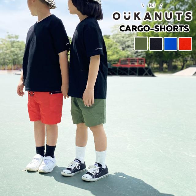 (クリックポスト発送) OUKANUTS/オウカナッツ CARGO-SHORTS カーゴショーツ ポケット6個も付いたナイロン100% のカラフルカーゴパンツ カーゴショーツ ウエストゴム仕様 おしゃれパンツ 短パン ハーフパンツ キッズパンツ 子ども服
