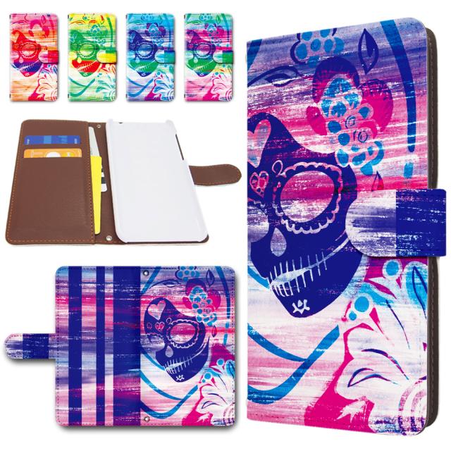 ZenFone3 ZE520KL ケース 手帳型 カメラ穴あり グランジ風 ドクロ シュガースカル柄 髑髏 スカル おしゃれ ゼンフォン 3 カバー スマホケース 手帳型スマホケース 携帯ケース 手帳 カバー
