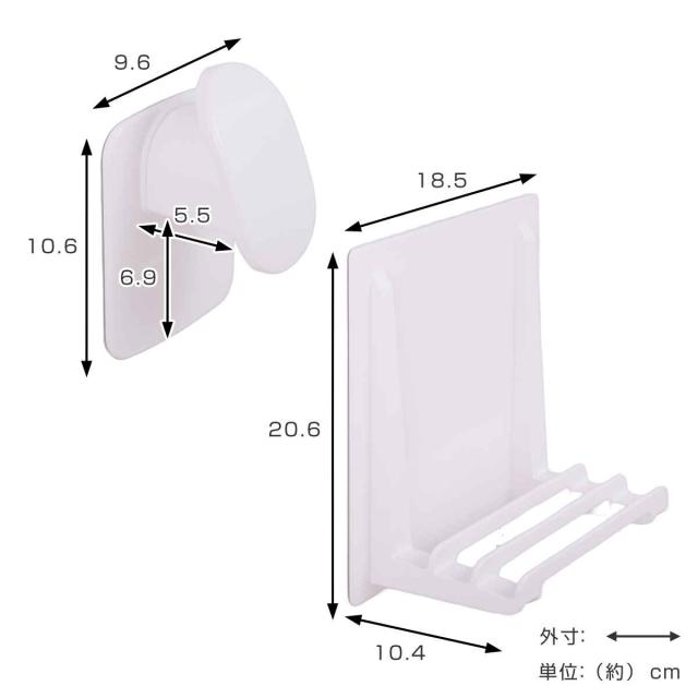 | 備考 | ※商品は風呂フタ収納本体のみで、風呂ふたは使用イメージです。 ※一定期間同じ場所に設置し続けると、設置面の変色やマグネットの色が移る場合があります。定期的に取り外し、設置面や本製品を洗浄してください。 ※ホルダーを移動する際は、壁から一度 取り外してから付け直して下さい。 取り付けたまま引きずるとマグネットが 削れ、壁に色移りする恐れがあります。 |