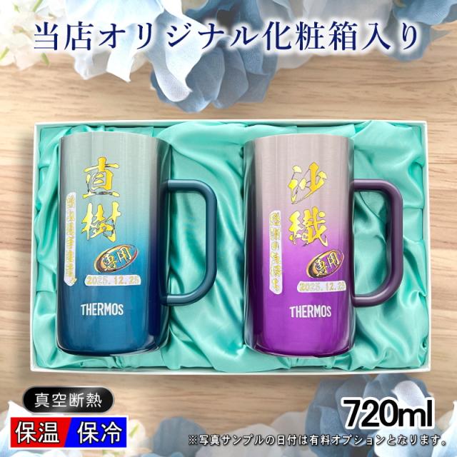 【化粧箱入り】 ビールジョッキ サーモス ペア 名入れ プレゼント 真空断熱 保温 保冷 ステンレス 名前入り プリント 印刷 ビアグラス おしゃれ ビールグラス 父の日 母の日 誕生日 カラー 男性 女性 バースデー ギフト 720ml 青緑 紫 JDK-721C JDK-720C ジョッキ セット P32