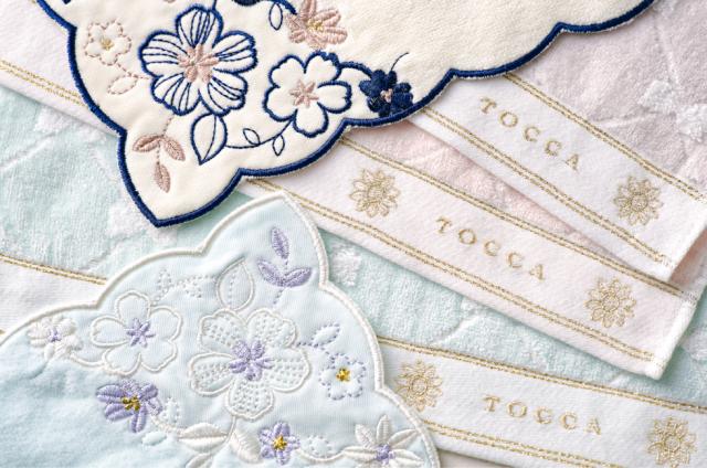 淡いカラーと白が基調の可愛らしいリボン柄や、年齢を問わず多くの女性から人気を集める花柄。TOCCAのロゴの刺繍がアクセントとなった、どこへ持っていくにもふさわしい上品で素敵な一枚です。