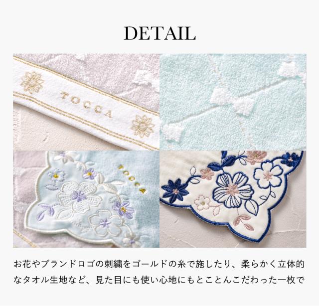 多くの国の女性から愛されるブランド、TOCCA。“TOCCA”というイタリア語は、英語で“TOUCH”の意味。思わず触れてみたくなるようなクラシカルなスタイルを提案します。やさしい手触りのふんわり柔らかなタオル生地で使い心地のいいアイテムです。