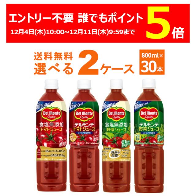 エントリー不要 誰でもP5倍 12/11 9:59までデルモンテ トマトジュース 野菜ジュース 選べる よりどり セット 800g×30本(2ケース) [ケース入数30本] [送料無料※一部地域は除く]