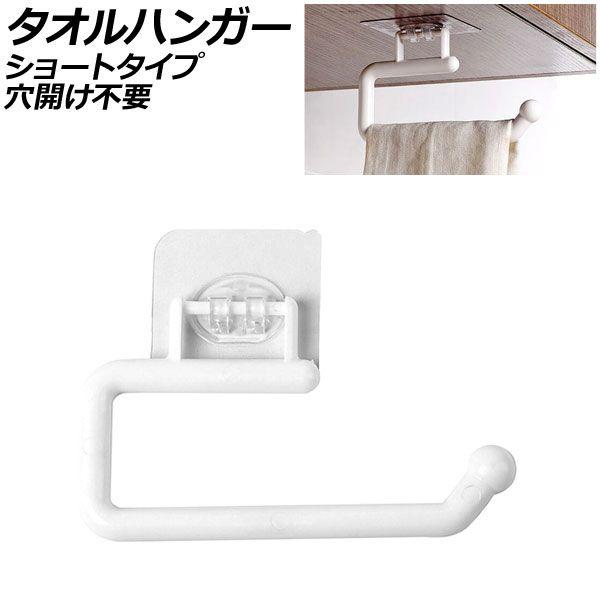 タオルハンガー ホワイト プラスチック製 ショートタイプ 粘着シートでしっかり固定!穴開けなしで使える AP-UJ0881-S-WH