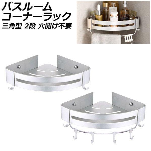 バスルームコーナーラック 2段 シルバー アルミ合金製 三角型 粘着シートでしっかり固定!穴開け不要!水はけ&風通しも抜群 AP-UJ0883-B-SI