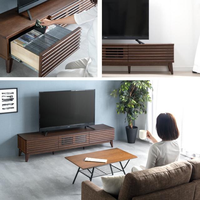 完成品 テレビ台 天然木 幅 175 約 180 テレビボード ローボード ロータイプ AVボード TV台 TVボード テレビラック TVラック 北欧 アッシュ 木製 ウォールナット色 木目