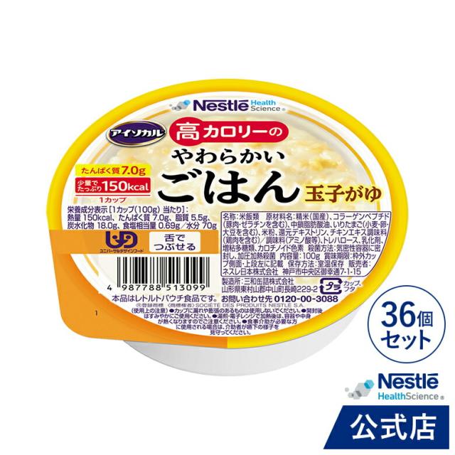 アイソカル 高カロリーのやわらかいごはん 玉子がゆ 100g × 36個セット【ネスレ 介護食 おかゆ ごはん 介護食品 介護 レトルト 栄養補助食品 高齢者 国産精米 少量 高カロリーたんぱく質 舌でつぶせる kyg1】