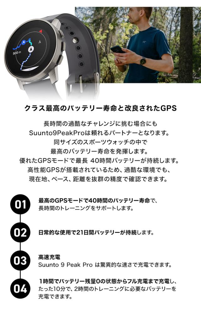 ■付属品:Suunto 9 Peak Pro、充電ケーブル、ユーザーマニュアル