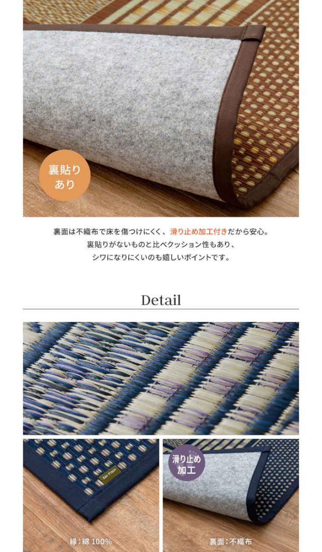 ■素材:表面:国産い草100% 袋織、裏面:不織布 滑りにくい加工、縁:綿100% 四方縁