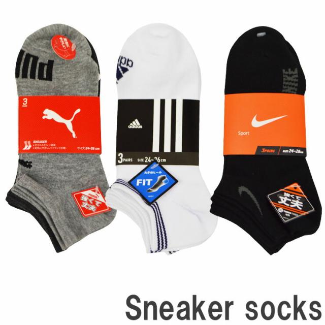 スニーカーソックス メンズ 靴下 メンズ くるぶし ブランド靴下 おまかせ アソート3足組 アディダス mizuno ミズノ ルコック アンブロ プーマ ナイキ nike くるぶしソックス くるぶし 靴下 ブランド(00433)