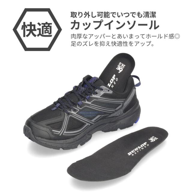 DUNLOP ダンロップ 靴 スニーカー メンズ リファインド DM2005 黒 ブラック グレー 幅広 6E 撥水 軽量 防滑 ウォーキング