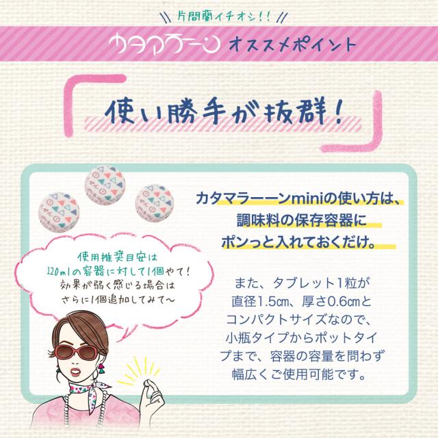 | 商品説明 | 創業70年の「医薬品用乾燥剤」老舗メーカーが開発した、調味料専用乾燥剤です。 使い方は簡単!開封後の調味料にポンっと1粒入れるだけ。 調味料を湿気による固まりから優しく守り、ストレスフリーにします! コンパクトなタブレット型で小瓶にも対応できるので、使い心地が抜群です。 お塩や中華調味料、ハーブなどにぜひご使用ください! |