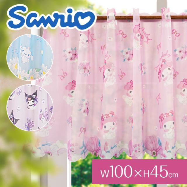 カフェカーテン カーテン 小窓用 小窓カーテン ミニカーテン スタイルカーテン シアーカーテン レース サンリオ Sanrio ハローキティ シナモロール マイメロディ クロミ 透け感たのしむシアー素材 100×45cm