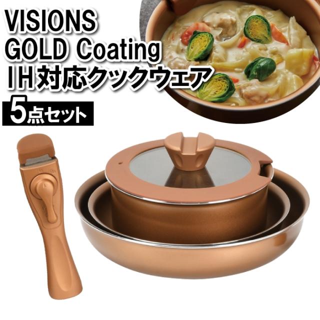 取っ手が取れる フライパン 鍋 ガラス蓋 5点セット IH 調理器具 料理 コンパクト 丈夫