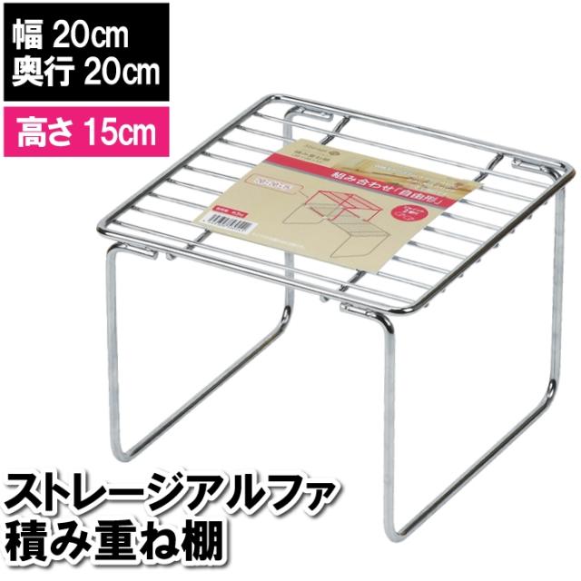 収納 折りたたみ 積み重ね棚 仕切り 20×20×15cm ラック キッチン 台所下 洗面台下 洗面所下 鉄 シルバー 四角 机 デスク キャンプ