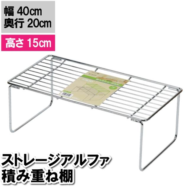 収納 折りたたみ 積み重ね棚 仕切り 40×20×15cm ラック キッチン 台所下 洗面台下 洗面所下 鉄 シルバー 四角 机 デスク キャンプ