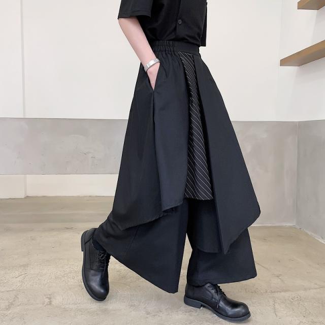 袴パンツ 韓国 黒 体系カバー モード系 メンズ ワイドパンツ 個性的 レディース 高級感 スカンツ 無地 ビッグシルエット ドレープ ストリート系
