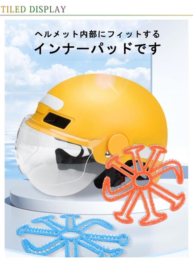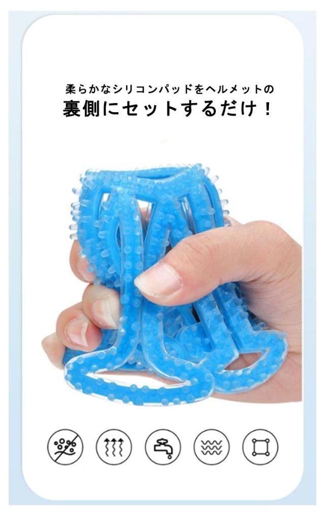 | ヘルメット内部にフィットするインナーパッドです 柔らかなシリコンパッドをヘルメットの裏側にセットするだけ! 接着テープ等は一切不要で、基本的にどんなヘルメットにも装着可能です。 ヘルメットと頭皮の間に空間を作ることにより、ヘルメット内のムレを緩和します。 シリコン製なので、洗って繰り返し使うことができるので、清潔な状態を保つことができます。 速乾性があり、洗ってからハンカチやタオルなどで拭くと、すぐに再利用できます | |
