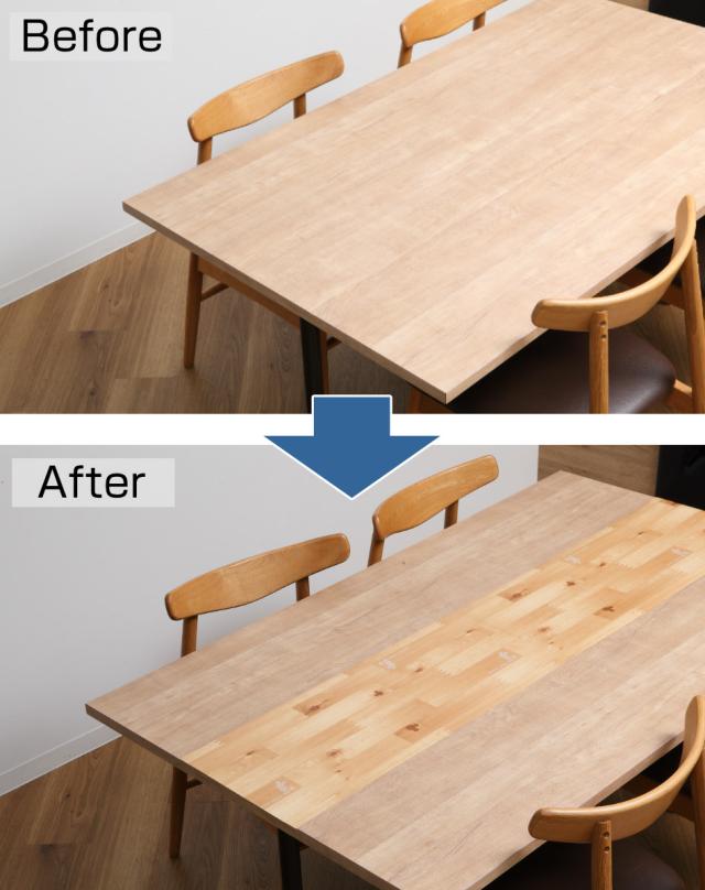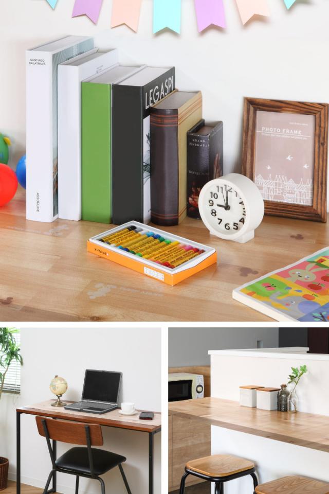 学習机、パソコンデスク、キッチンカウンターに貼れば簡単にイメージチェンジができると同時に、キズや汚れも防ぎます。