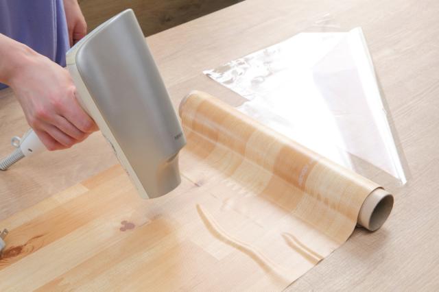 シワが気になる場合は、ドライヤーの温風を当てて、乾いたタオルで空気を押し出すようにして貼り付けてください。