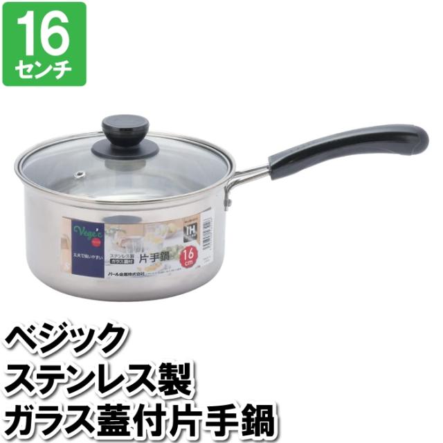 | 片手鍋 16cm ガラス蓋付き ステンレス製 鍋 丈夫 扱いやすい オール熱電対応 |