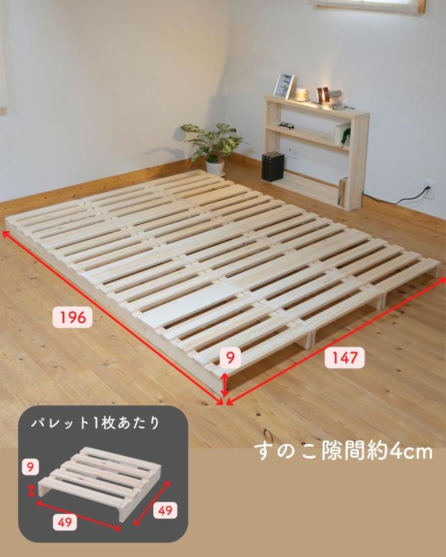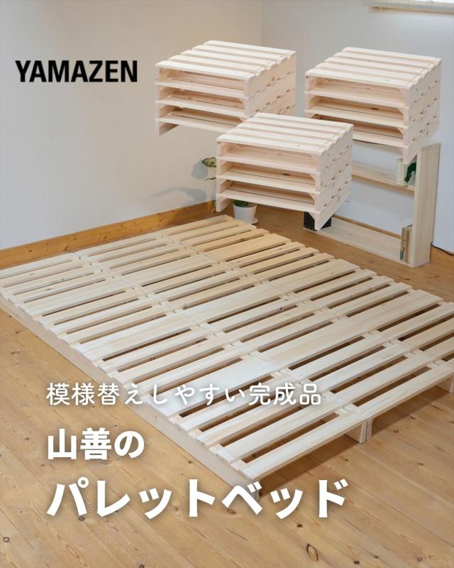 ベッド ローベッド ベッドフレーム ダブル 天然木パイン材 フロアベッド すのこベッド ロータイプ 幅147 長さ196 高さ9cm ダブルベッド パレット 正方形 12枚セット 連結可能 無塗装 すのこ パレットベッド 並べる 連結 山善 YAMAZEN 【送料無料】