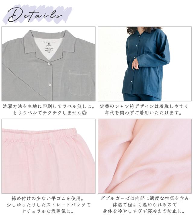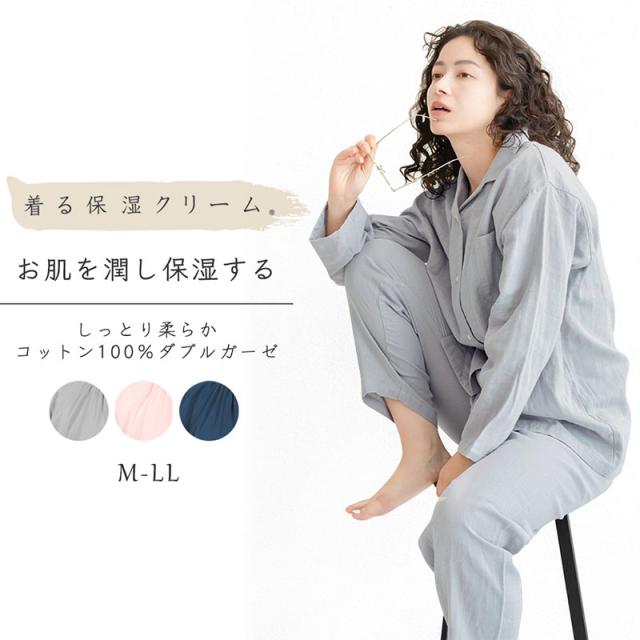 着る保湿クリーム パジャマ レディース 保湿 綿 綿100% ガーゼ ナイトウェア ルームウェア 長袖 上下 《レビュー記入で送料無料》 パンツ 部屋着 セットアップ スキンケア 敏感肌 アトピー 乾燥肌 入院 お泊り シンプル ナチュラル ギフト プレゼント 母の日 D38100 送料無料