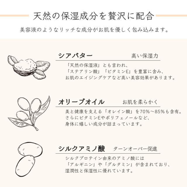 生地に天然の保湿成分を贅沢に配合。