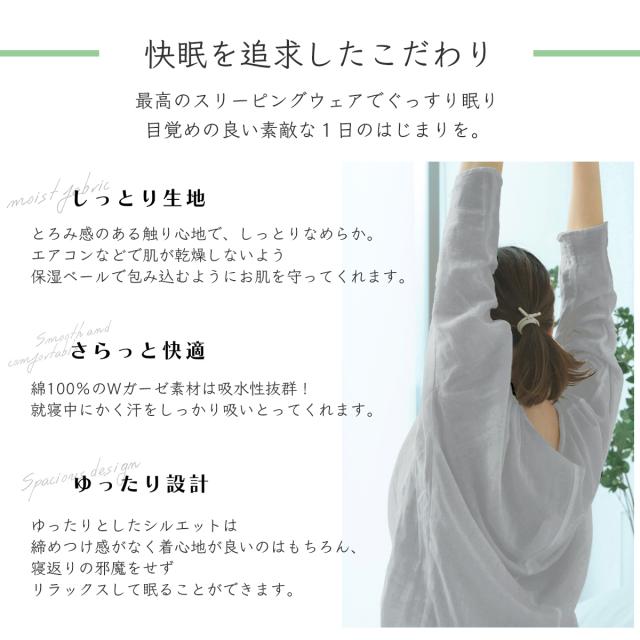 綿100%のガーゼ素材は、寝ている間の汗をしっかり吸いとってくれ、