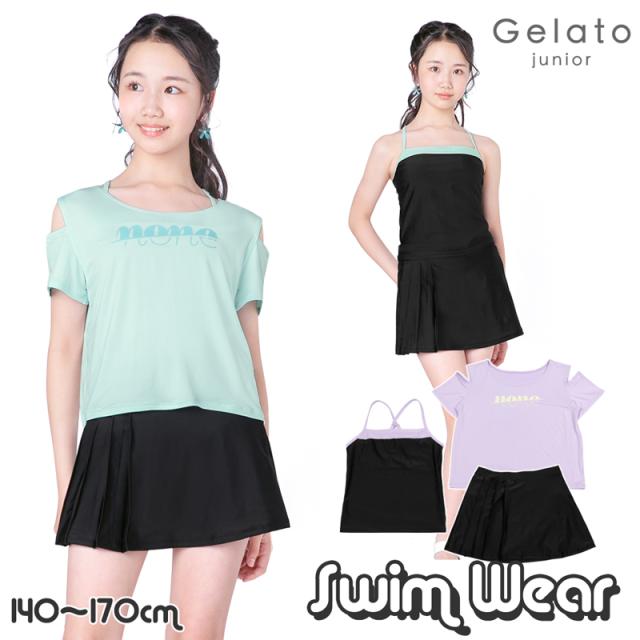 ジュニア 水着 女の子 キッズ タンキニ Tシャツ スカート プリーツ 小学生 中学生 140 150 160 170 おしゃれ 《レビュー記入でメール便無料》 可愛い ティーン セパレート 水着 3点セット 体型カバー スクール水着 送料無料 Gelato Jr ジェラート ニコラ 送料無料