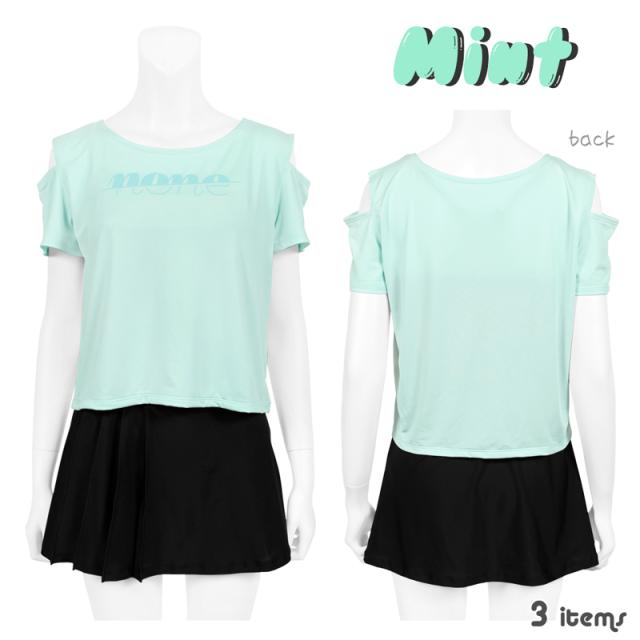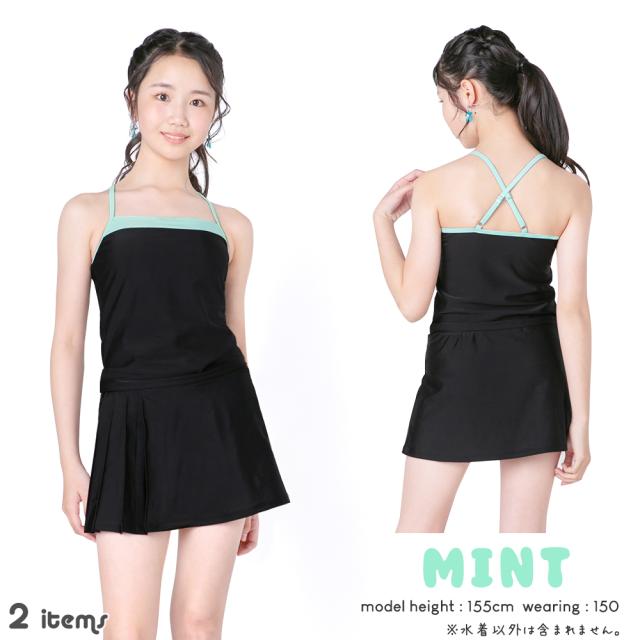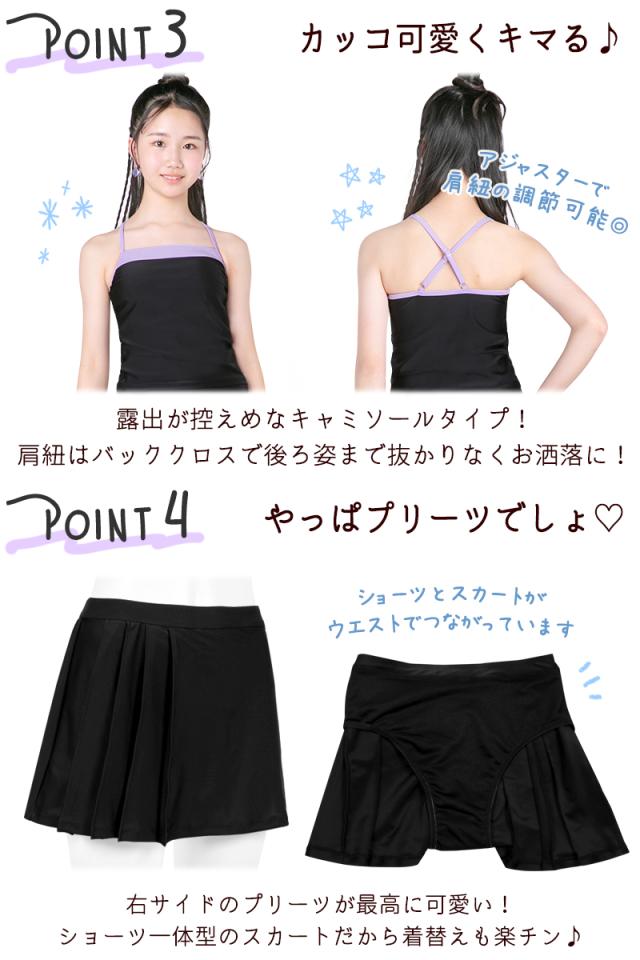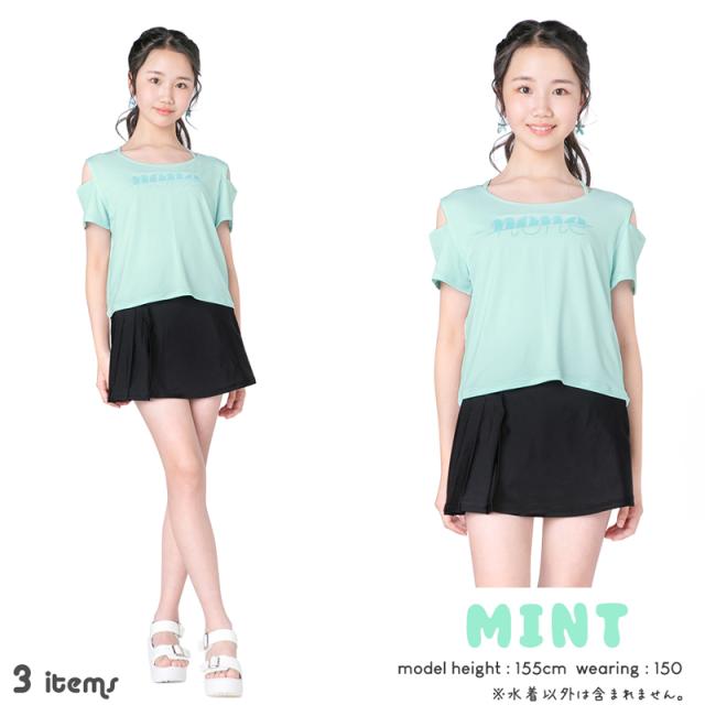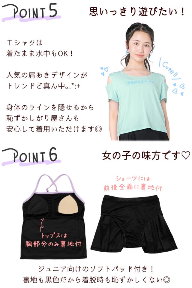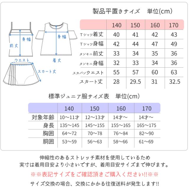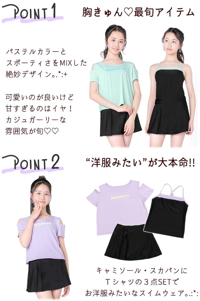 商品カテゴリ : ジュニア ティーン 女の子 水着 3点 セット タンキニ スカート プリーツ Tシャツ 体型カバー 小学生 高学年 中学生 可愛い お洒落 スクール