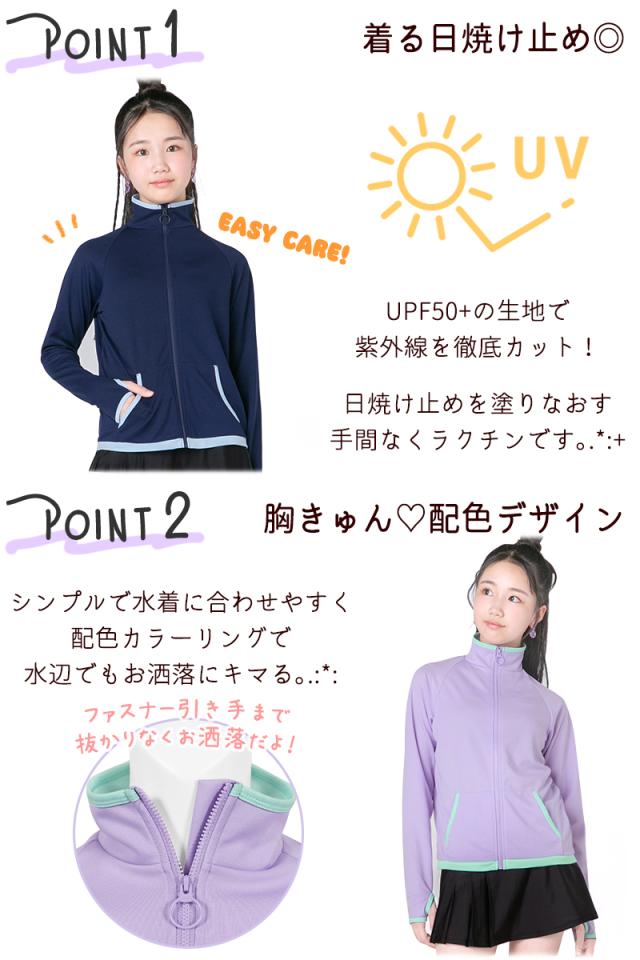 着る日焼け止め ラッシュガード ラッシュ ジュニア キッズ 女の子 長袖 140 150 160 170 小学生 中学生 《レビュー記入でメール便無料》 高校生 水着 スクール水着 ジップアップ UPF50+ UV お洒落 可愛い スポーツ : Gelato Jr ジェラート ニコラ 送料無料