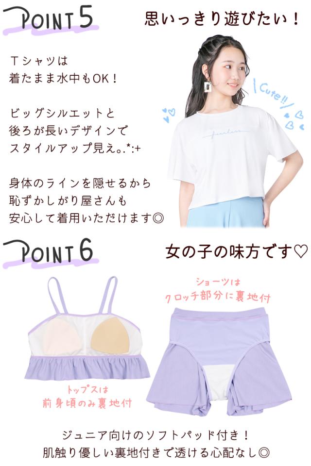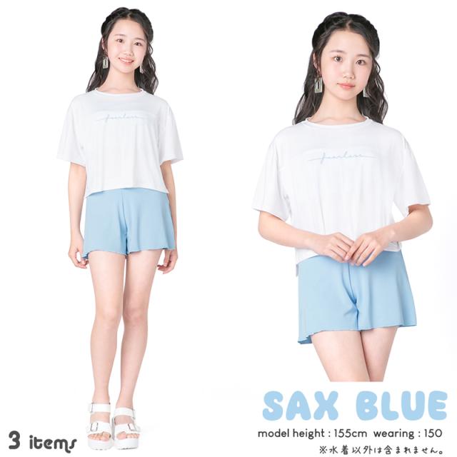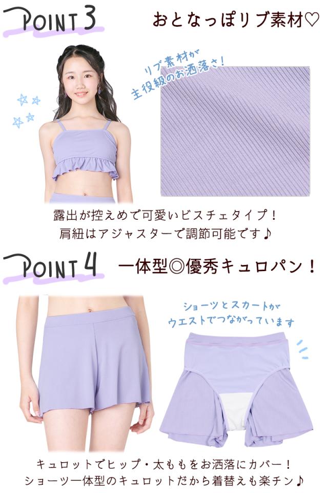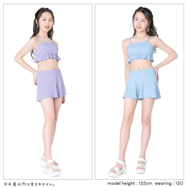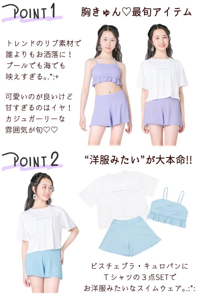 商品カテゴリ : ジュニア ティーン 女の子 水着 3点 セット ビキニ キュロット パンツ リブ Tシャツ 体型カバー 小学生 高学年 中学生 可愛い お洒落