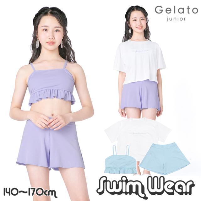 ジュニア 水着 女の子 キッズ ビキニ Tシャツ キュロット パンツ リブ フリル ビスチェ 小学生 中学生 140 《レビュー記入でメール便無料》 150 160 170 おしゃれ 可愛い ティーン セパレート 水着 3点セット 体型カバー 送料無料 Gelato Jr ジェラート ニコラ 送料無料