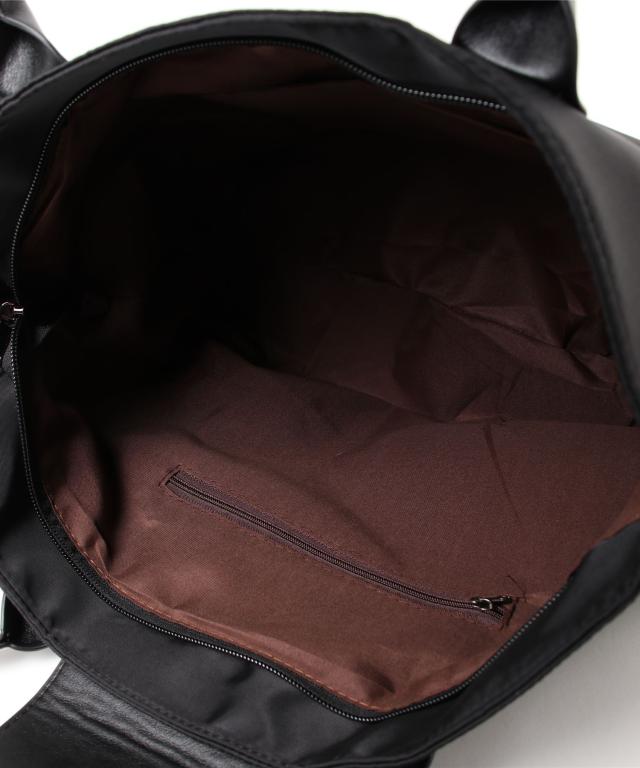 さらりとした肌触りのオックスフォードにPUレザーを組み合わせた、異素材MIX仕様。