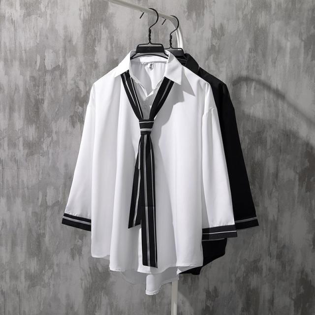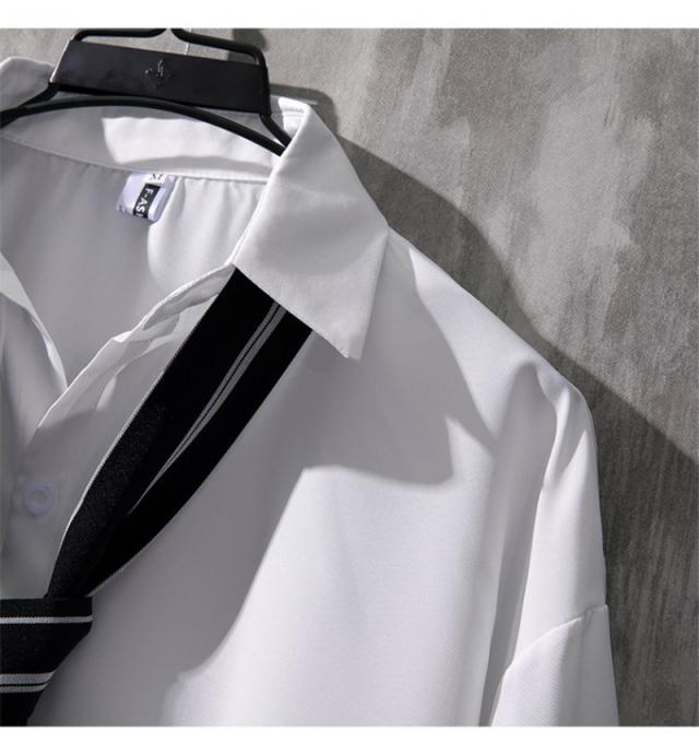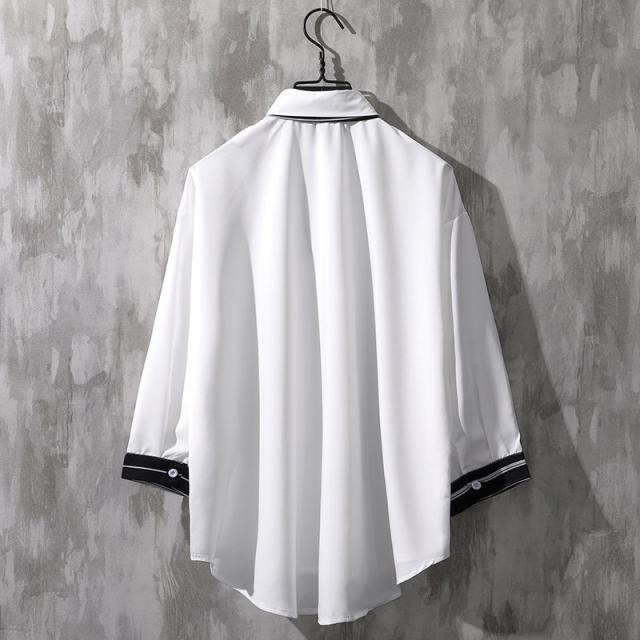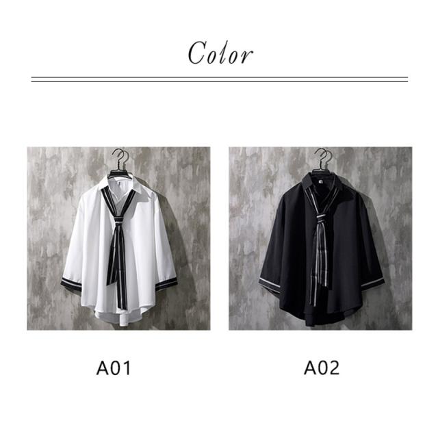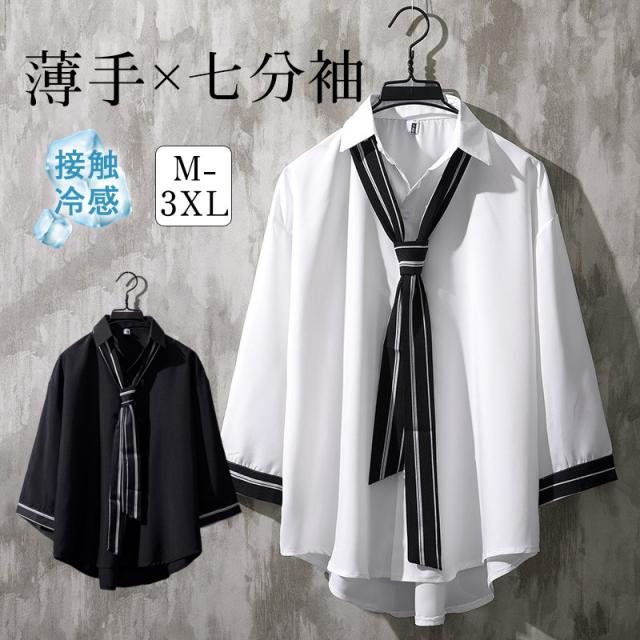 シャツ メンズ 半袖 ブラウス トップス 開襟シャツ 七分袖 カジュアルシャツ 薄手 ゆったり 無地 リラックス オーバーサイズ