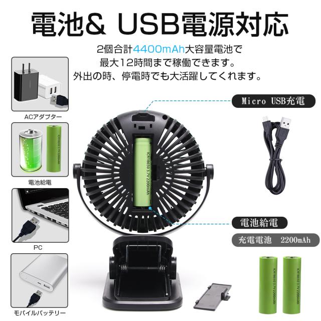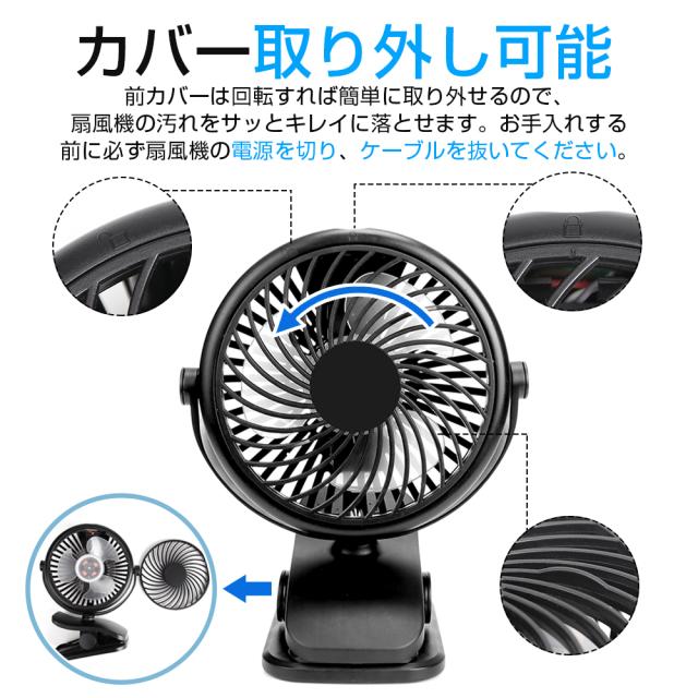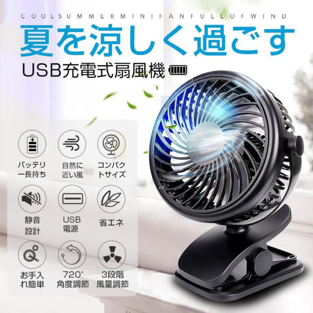 扇風機 卓上 クリップ式扇風機 2WAY給電 3段階風量調節 USB扇風機 卓上扇風機 ミニ扇風機 360度角度調整 小型 静音 2WAY給電 乾電池2本付き 360度角度調整