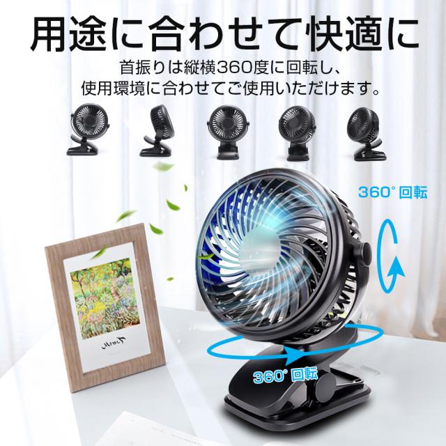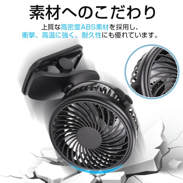 - 猛暑の中、車で出掛けた時…クーラーが効くまでに、後部座席にいる子供達が汗だくになっているのを見て、こちらの商品を購入しました。快適です!クリップ式なので、ヘッドレストにしっかりと止まります。360度角度調節出来るので、好きな場所に動かせます。ただ、自動回転はしないので、独り占めになってしまいます。子供がケンカになるので、もう1つ購入しようかと検討しています。
