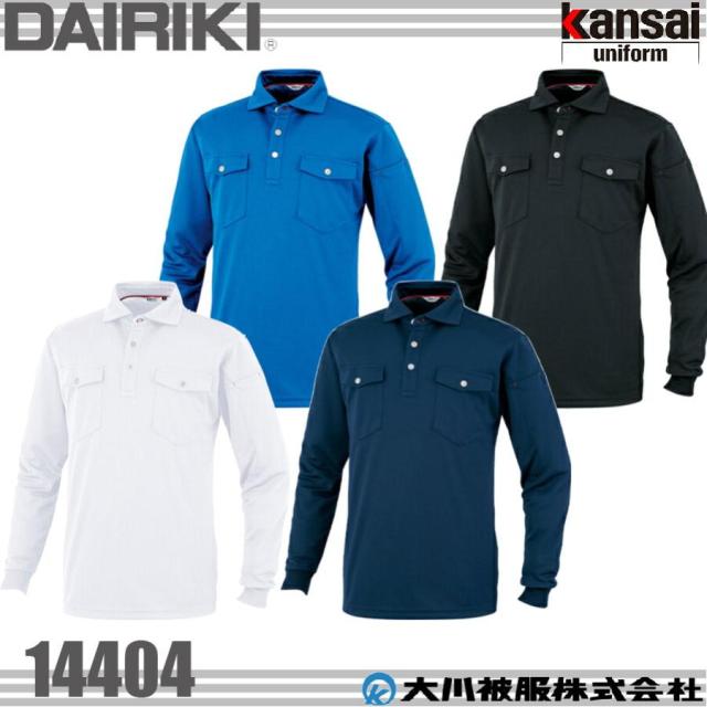 大川被服 14404 kansai uniform 長袖ポロシャツ カンサイユニフォーム 吸汗 速乾 通気 軽量 作業服 山本寛斎 (社名ネーム一か所無料)