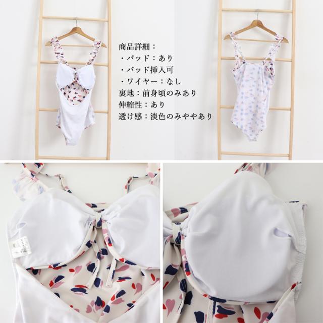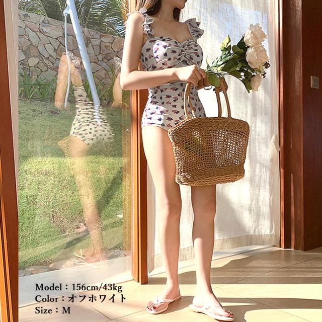 韓国風 花柄水着 体型カバー モノキニ 胸元ギャザー 20代 夏 海 セクシー 夏服 日焼け止め 肩出し 人気 リゾート