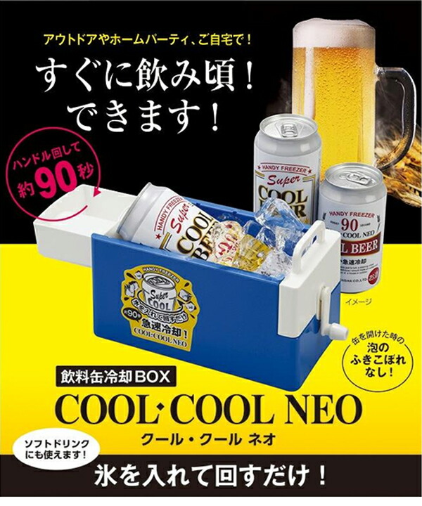 ●いつでもどこでも氷を入れて90秒でドリンクが5〜6℃の飲み頃に! ●ハンディフリーザー「クール・クール ネオ」ビールや炭酸飲料も吹きこぼれしません! ●BBQやキャンプなどでも5〜6℃の飲み頃キンキンビールが楽しめます!! |