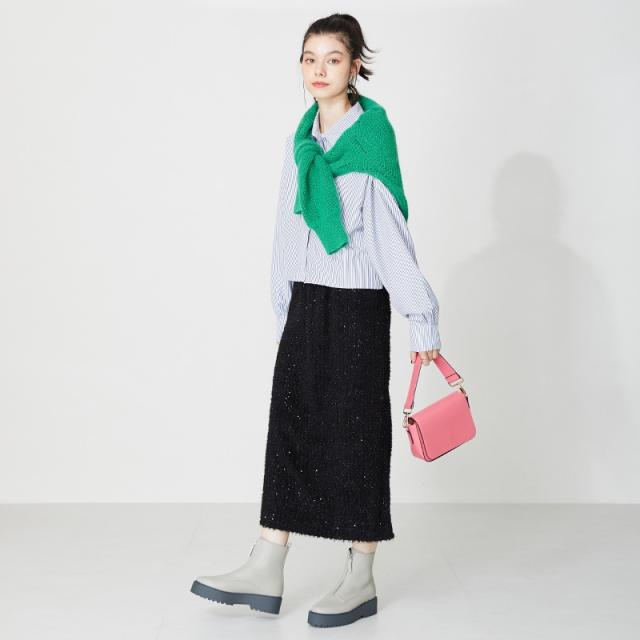 中央にジップデザインを合わせることで足が真っ直ぐに見え、程よい厚底で美脚効果抜群。