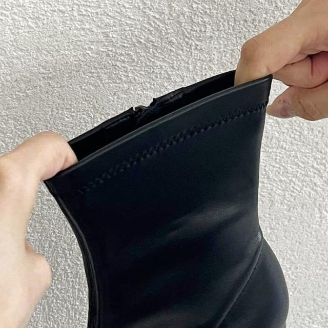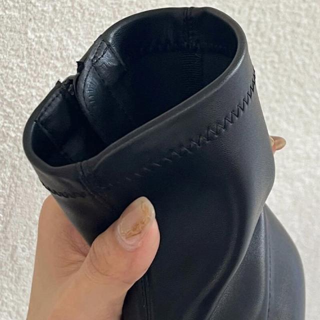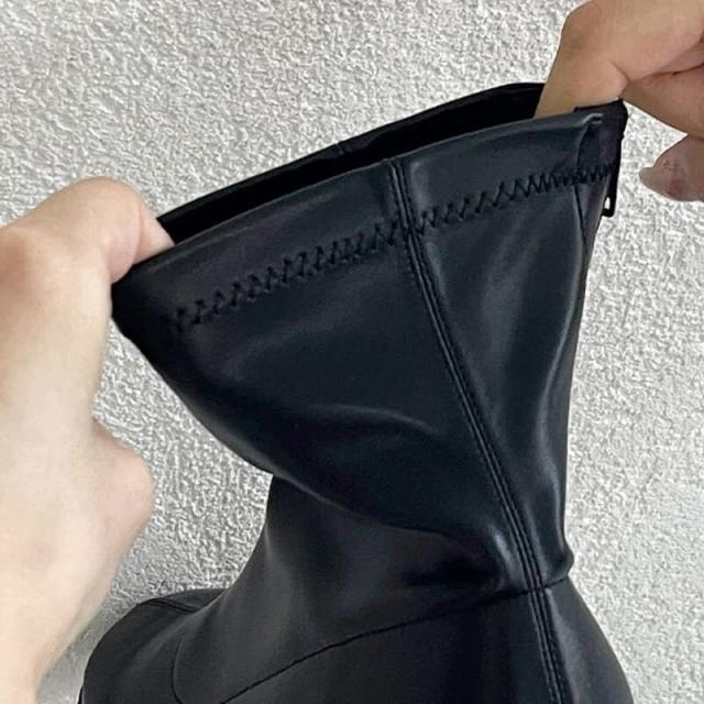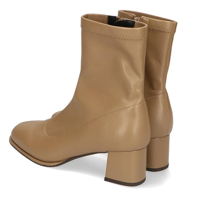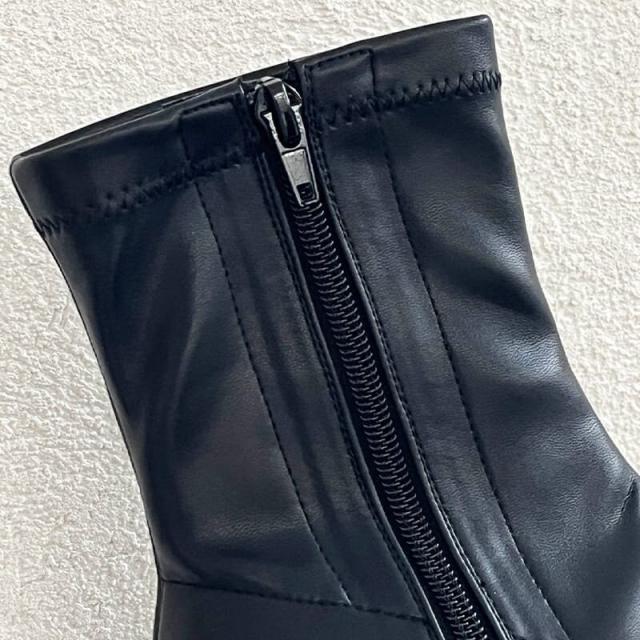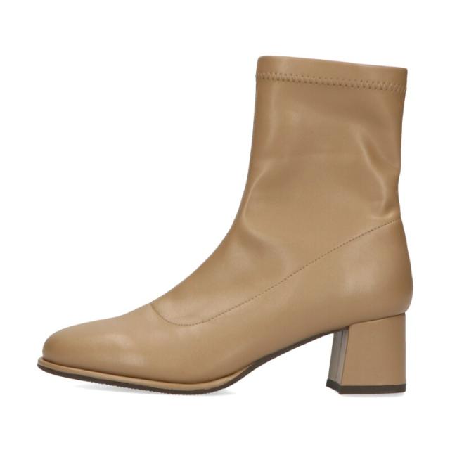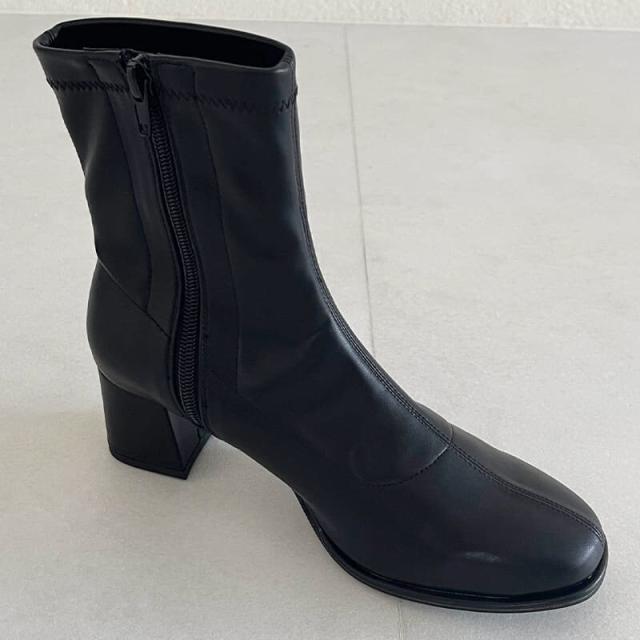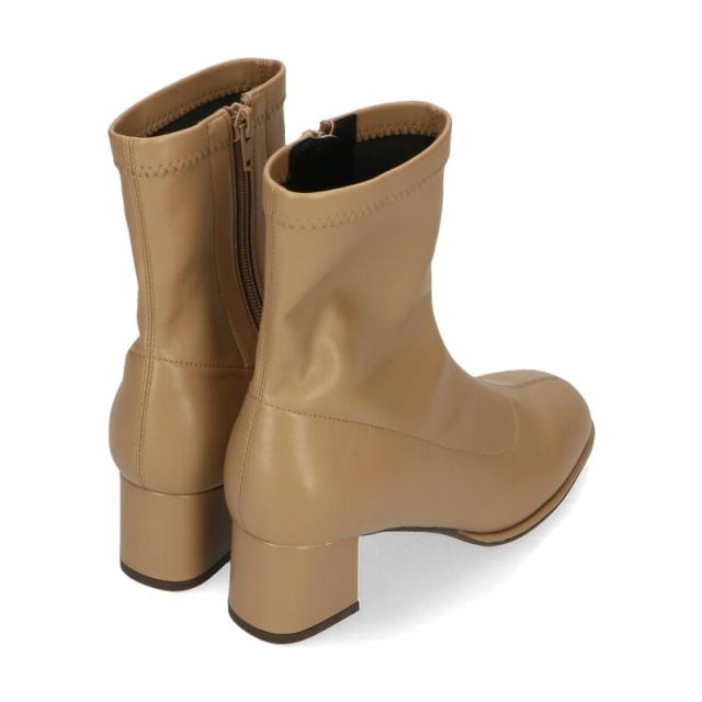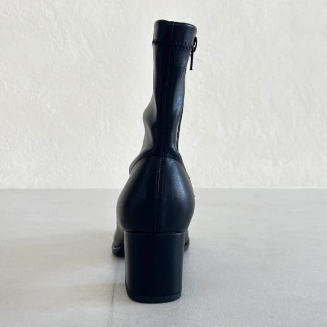 ころんとした丸みのあるラウンドトゥで可愛らしい印象のストレッチブーツは、コバを付けたソールがワンポイント。