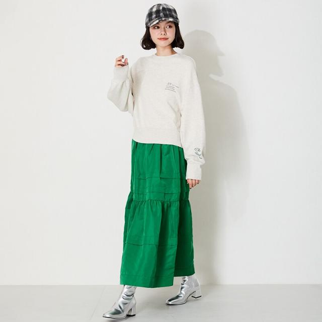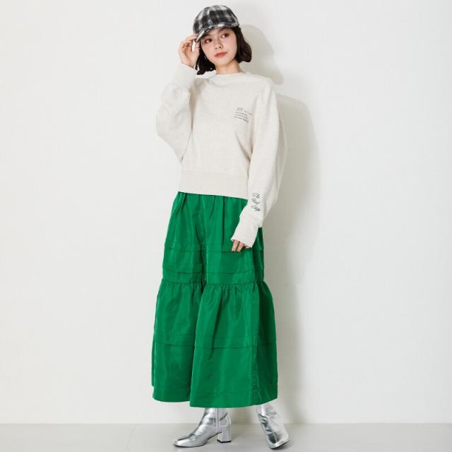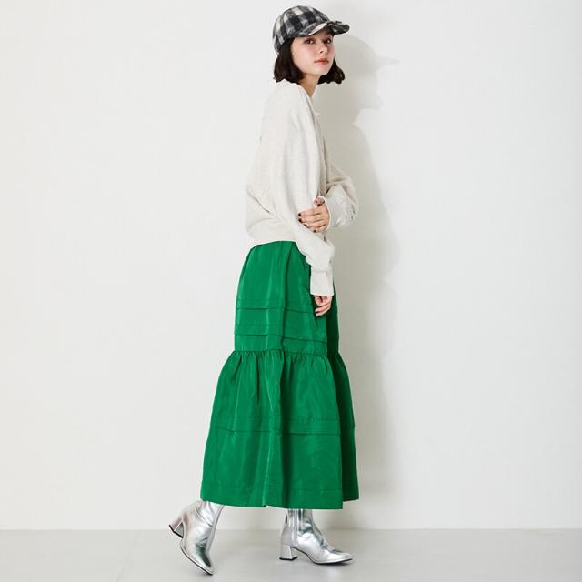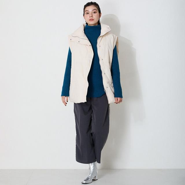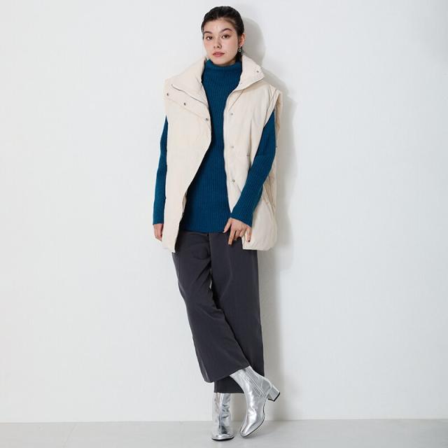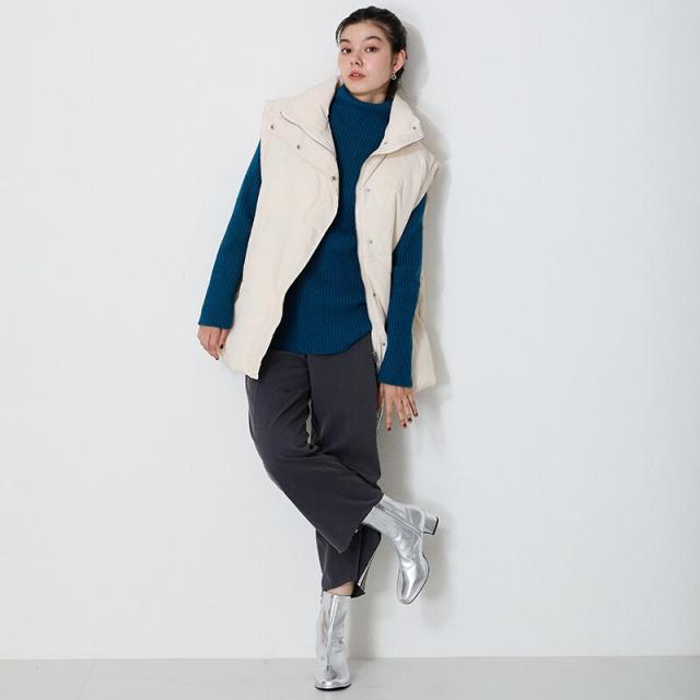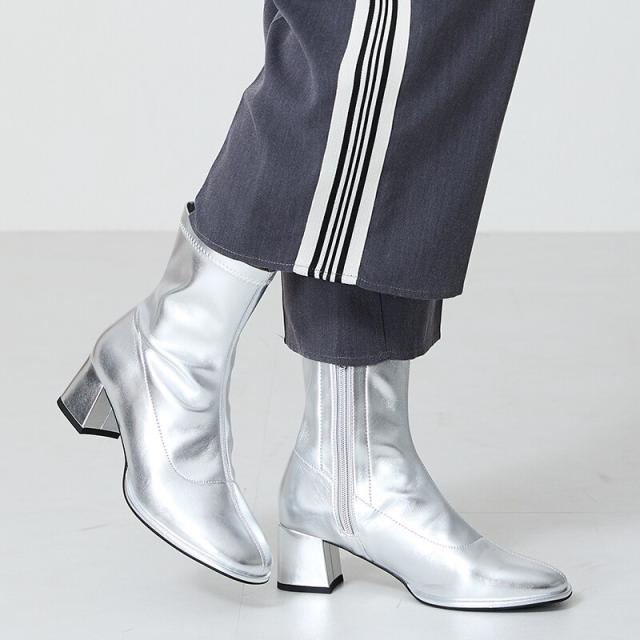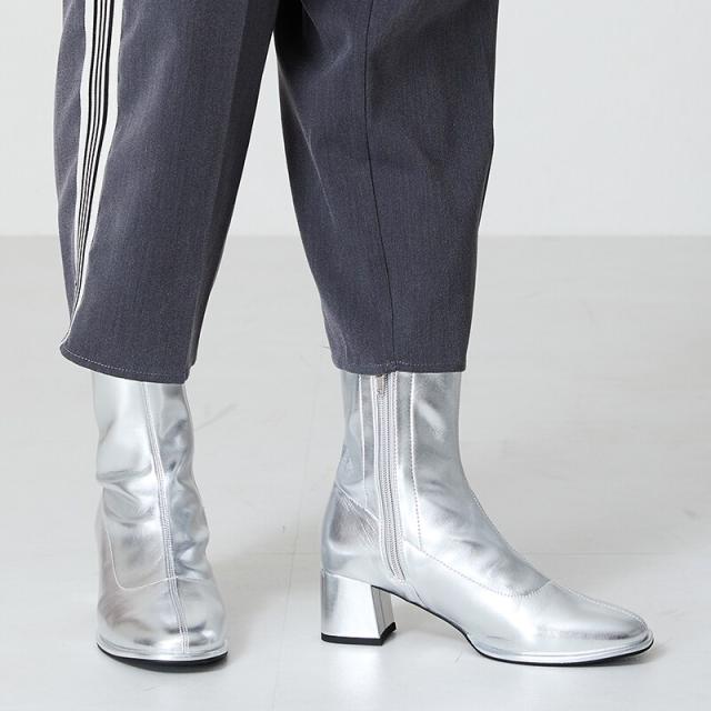 安定感のあるチャンキーヒールでカジュアルさもありながら、脚を長く見せてくれるセンターシームのデザインや、細身の筒回りでスタイリッシュな足元に。
