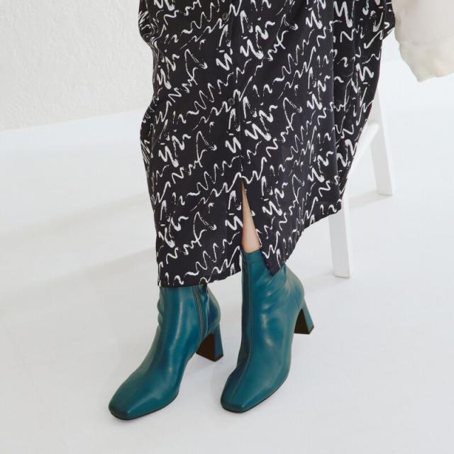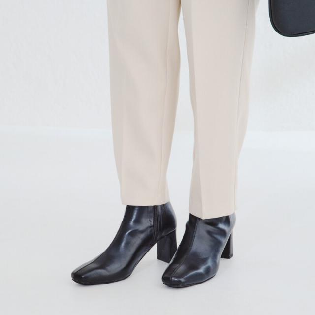 筒回りをタイトにすることで足首周りのラインが綺麗に見え、美脚効果も抜群◎。ほっそりとした形のスクエアトゥなので上品な印象になり、カジュアルになりすぎないので様々なアイテムに合わせやすく、履き回ししやすい。