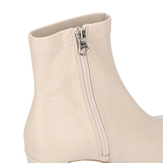 センターシームが入ったスマートなシルエットの今シーズンも外せないストレッチブーツは、プレートヒールにすることでサイドからもすっきりと見え女性らしい1足。