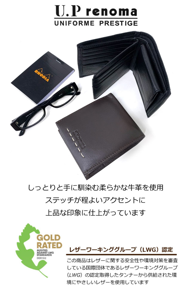 メンズ二つ折り財布 U.P renoma ユーピーレノマ トランス 中ベラ付き 二つ折り財布 本革 61r674 メンズ 通勤 学生 2つ折り ブランド 大容量 カード入れ 本皮 レザー 牛革 社会人 プレゼント ギフト バレンタインデー 父の日 クリスマス xmas 黒 茶 2つ折り財布 コンパクト