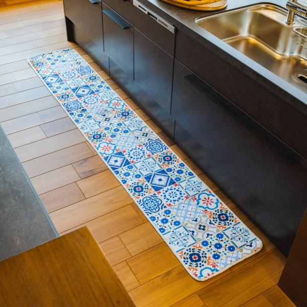 キッチンマット タイル柄 40×240 モロッコタイル風 ウレタン入り 洗濯機OK すべりにくい加工 短毛起毛 ロング