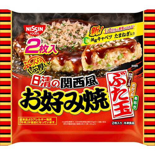 日清 日清の関西風お好み焼 ぶた玉 2枚入(482g)×8個 (冷凍食品) ふっくら分厚い 国産キャベツ、玉ねぎ入