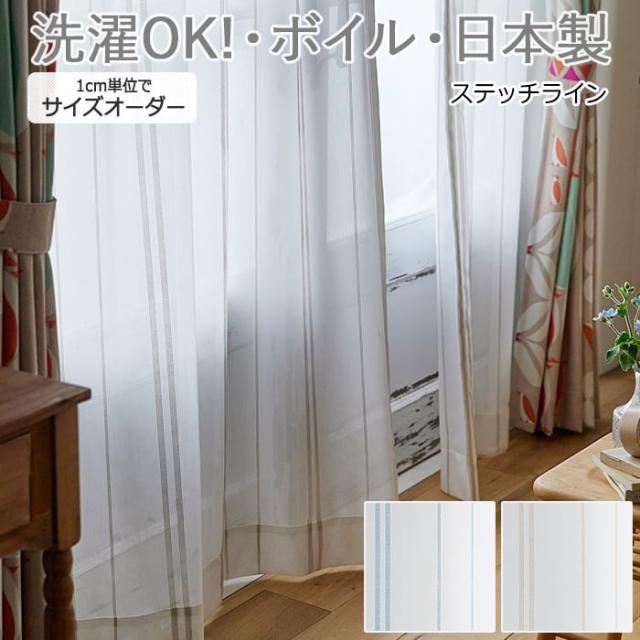 【レースカーテン】 洗える 薄地カーテン レース ボイル 日本製 オーダー 幅100×丈260cm以内 ステッチライン (S) 丸洗い DESIGN LIFE デザインライフ 引っ越し 新生活